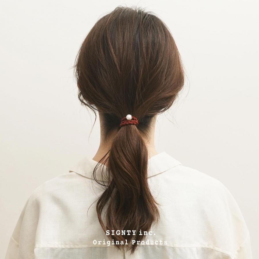 編み込んだゴムのデコボコが、髪をやさしく結びます。